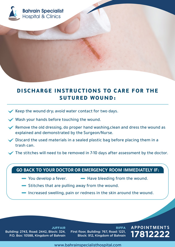 - The stitches will need to be removed in 7-10 days after assessment by the doctor.